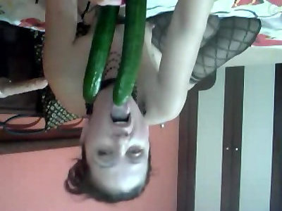 fucking her pussy with a thick cucumber, until she ejaculates deliciously, she is a slut