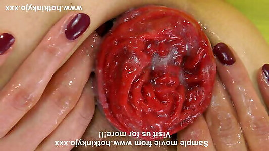 Hotkinkyjo pummels her rump with crimson cyclops dildo and rosebutt