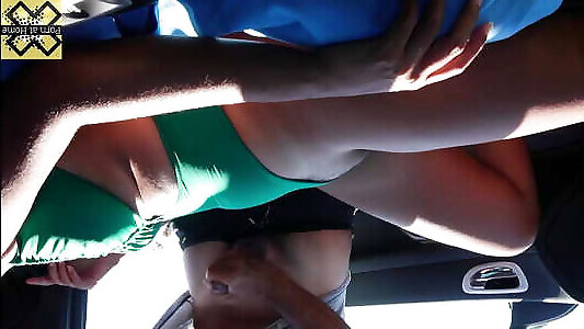 Esibizionista italiana succhia il cazzo in macchina e ingoia