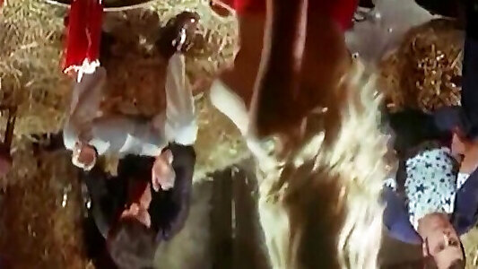 Brilliant Woman Riley With Giant Milk Cans Leaps On A Fat Trunk