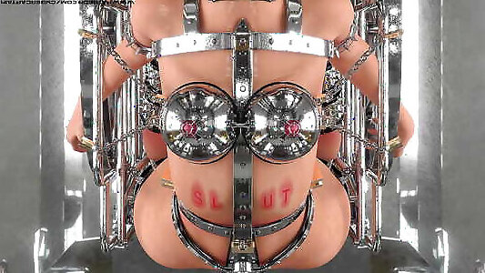 Ginger in Hardcore Metal Bondage and Latex Catsuit Waiting for Facefuck 3D BDSM Animation 2