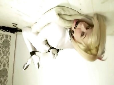 Self Restrain Bondage, Sensory Deprivation sweetheart girl Doxy Magic Vibrator Corset - Super-cute Lady In Rubber Spandex Catsuit