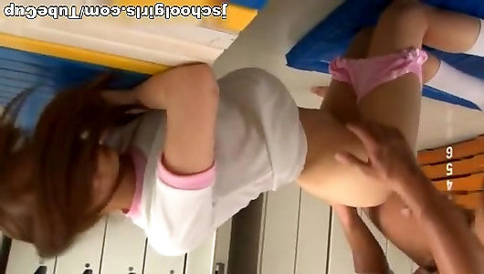 Locker Apartment Hump With Rina Rukawa Poking Thru Her T-Tee-shirt