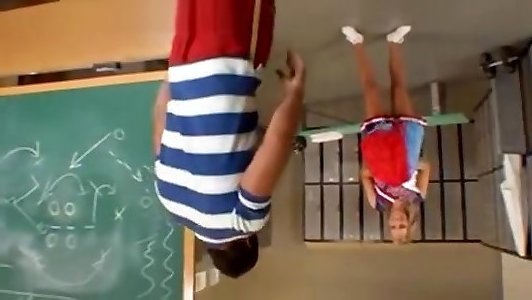 Short hair teenie humping her PE teacher in the lockerroom