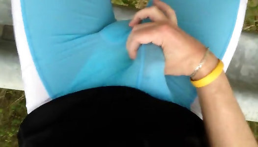Gigantic-Backside Chesty Light-haired Teen OutDoor Gym Wearing Cock-squeezing Lycras a