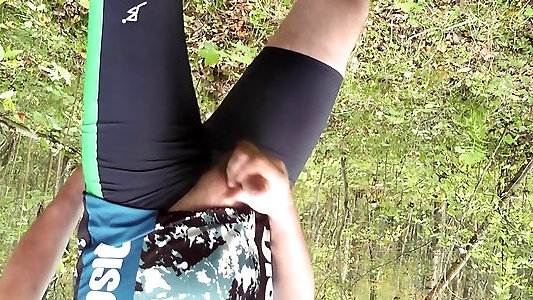 Cyclist full view sex Radfahrer mit Jockstrap spritzt in die Radhose