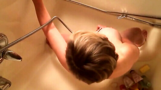 Mommy polishes her plump lush booty as she blows a load by soapy shower massage thai
