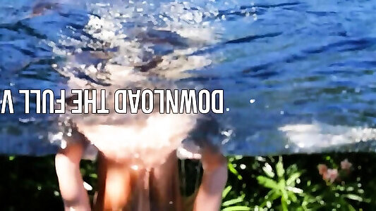 Lesbo Cougar models frolicking and kissing near a pool