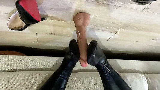Sole job with a fuck stick from super-steamy Mistress Lara in super-sexy ebony leather stockings