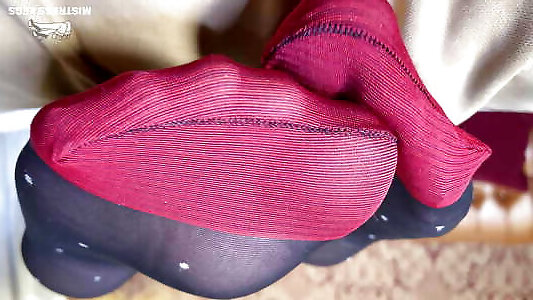 and footjob with pantyhose and sheer feet shot up close up