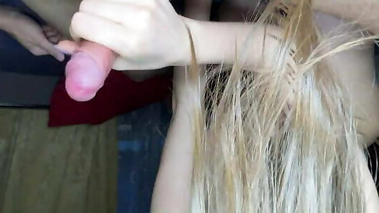 A super petite 20-year-old Russian blonde sucks a giant cock!