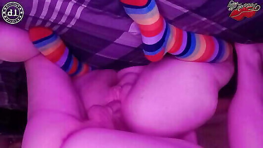 Christmas amateur FMM threesome double penetration with sex doll and cum on face