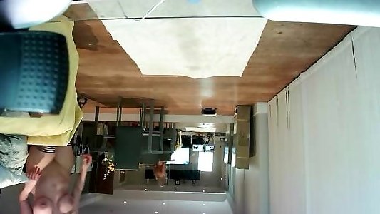 The neighbor is doing repairs and does not suspect what the beauty is doing in the apartment behind the wall!