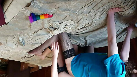 My boyfriend gives me an oral and then I fuck him using a strap-on Argentinian homemade pegging