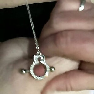 nippleringlover horny milf bouncing boobs spread open pierced pussy pearls through extreme stretched pierced nipples