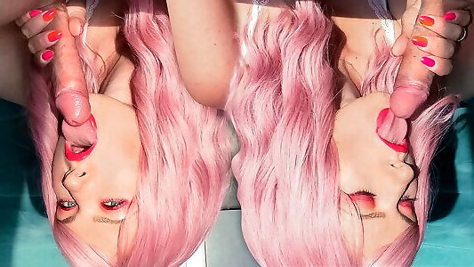 Mild Deep Throat and Jizm Have Fun from Hotty with Pinkish Hair and Fleshy Lips