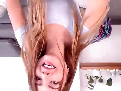 Glamorous anonymous webcam girlie pulls up her T-t-shirt to brag of ample bra-stuffers