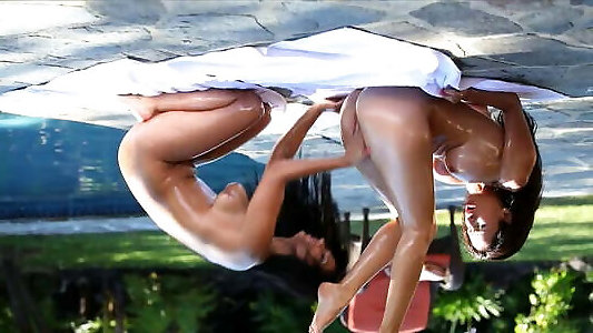 Reena Sky and Vanessa Veracruzsi gobble pussy by the pool