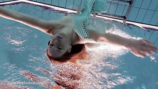 Fantastic ginger-haired bint Salaka Ribkina exposes her red-hot assets in the water