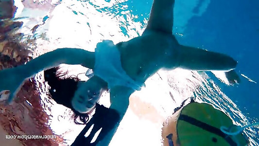 Jaw-dropping Katya Okuneva aint afraid of flashing her breasts in the pool!