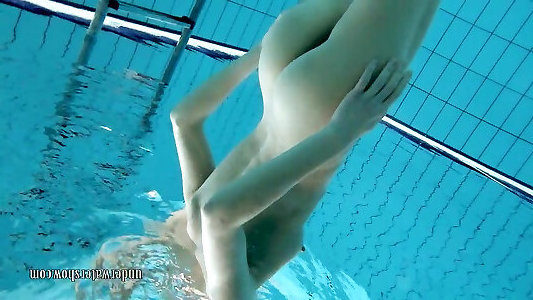 Uber-sexy hot seks lesbian filly Gazel Podvodkova fools around the pool in the naked