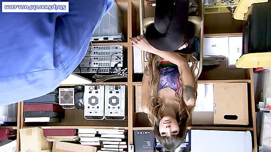 Security tusye balack takes off meaty hooters teenie shoplifter and smashes her