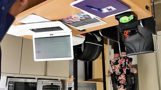 An ebony ultra-cutie gets pummeled on a table by a white guy