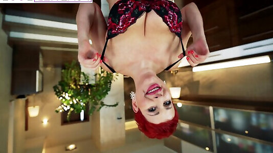Redhead vixen Madelyn Monroe juggles her ass on a spunk-pump cowgirl style