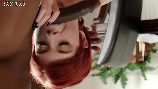 Brief haired redhead tramp has bi-racial bang-out with dark-hued stud from Pov