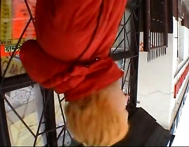 Short haired sandy-haired takes 2 peckers in the alley