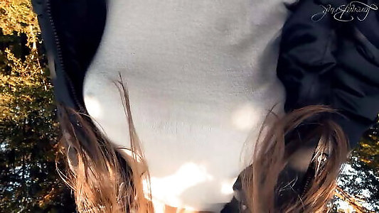 Boobwalk: White Shirt and Coat in Fall - Brief Bonus