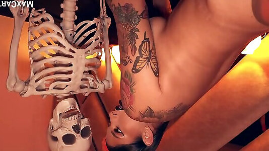 Perverted Skeleton Fucks A Teen Witch On Halloween Night!