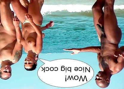 A smoking hot brunette sweetie in a bikini gets interviewed and slammed hard