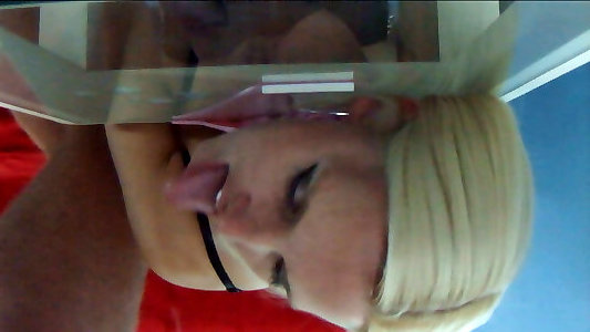 Platinum-blonde Ultra-cutie Sindy Tongues Down Jism After Being Nailed
