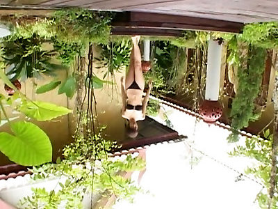 Provocative Asian super-bitch Mariko Okubo bathes in a ebony caught masturbating with roses