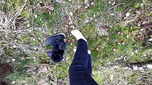 Stiff gipsy female with ruler on delicious ass, defenseless in the forest