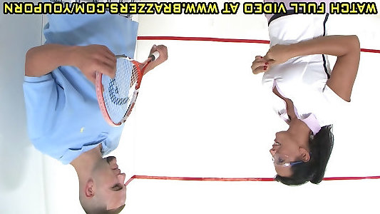 Hot Cassie catapults a squash deep in her tidy trimmed honeypot