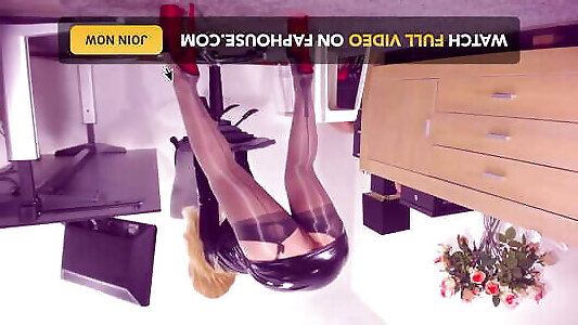 Secretary in Nude Stockings and High Heels Handjob on Her Legs