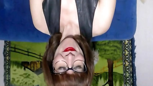 Kinky Cougar in sundress pounding in red stocking and high high-heeled slippers