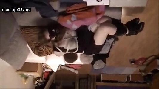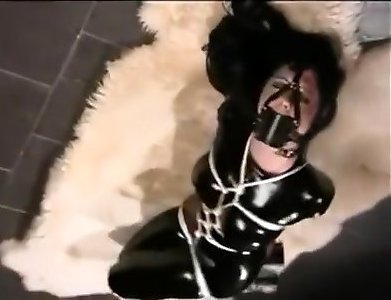 Frogtied Teen Ball-gagged And Struggling In Cable Bondage