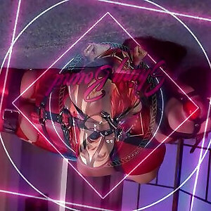 Ally Style corded ball-gagged boob-spanked caned stimulated