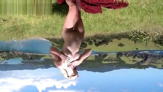 Busty congenital stunner in high stilettos solo backside frolicking activity