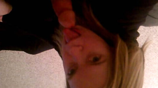 Chick with smallish udders deepthroating my rod, cum in facehole, Pov