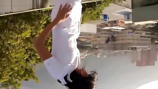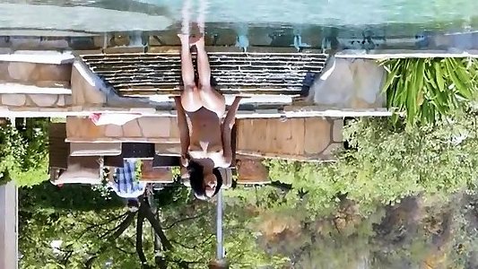 An attractive lady is bb special on the roof of her house. Nude yoga Touch pussy outdoors. 1
