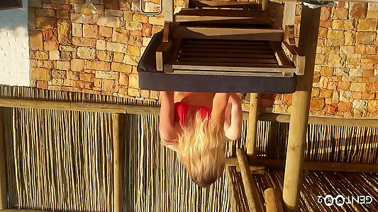 Sunbathing Blonde In A Crimson Rope Bathing Suit Gets Nailed - Gentoo2
