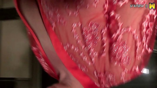 Taking warm bathtub chesty Cougar is disturbed by well suspended turned on guy