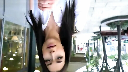A bit shy Asian dark-haired peels off, flashes milk cans and faps twat