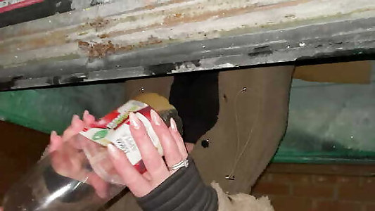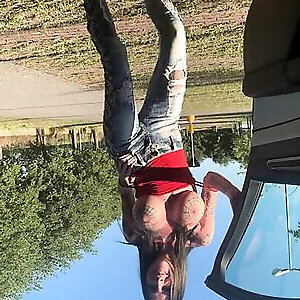 Megan Dancing bare and showcased outside the car in van Cinema camper parking