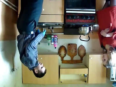 Horny housewife gets her kitten torn up with kitchen tool hard