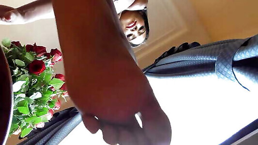 Miss Douxxx and Nikki Happily Kissed While Standing on the Slave!